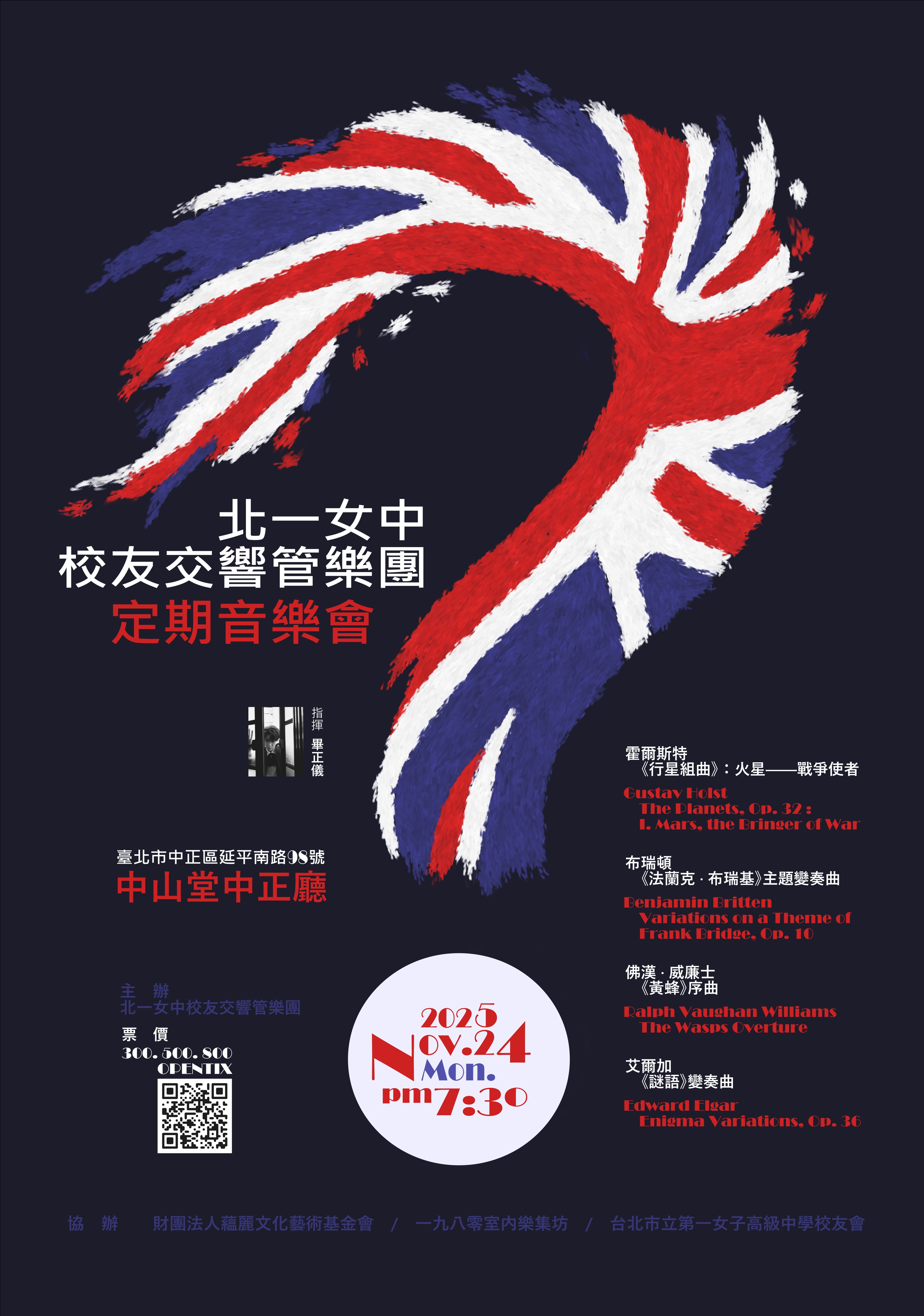 時間:114年5月4日(日) 17:00-18:00 🚩演出地點:中正紀念堂大孝門廣場(如天候不佳將移至大孝門廳,請以官網公告為準) 👀演出內容: 1.Celtic Forest塞爾特之森 2.Aqua水 3.Fireflies螢火蟲 4.花は咲く花正在開 5 ..........