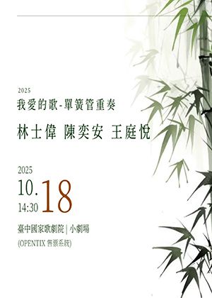 2025年10月18日星期六下午三點 - 台南大學雅音樓 2025年10月25日星期六晚上19.30 - 台北國家演奏廳 售票系統:兩廳院售票系統 ..........