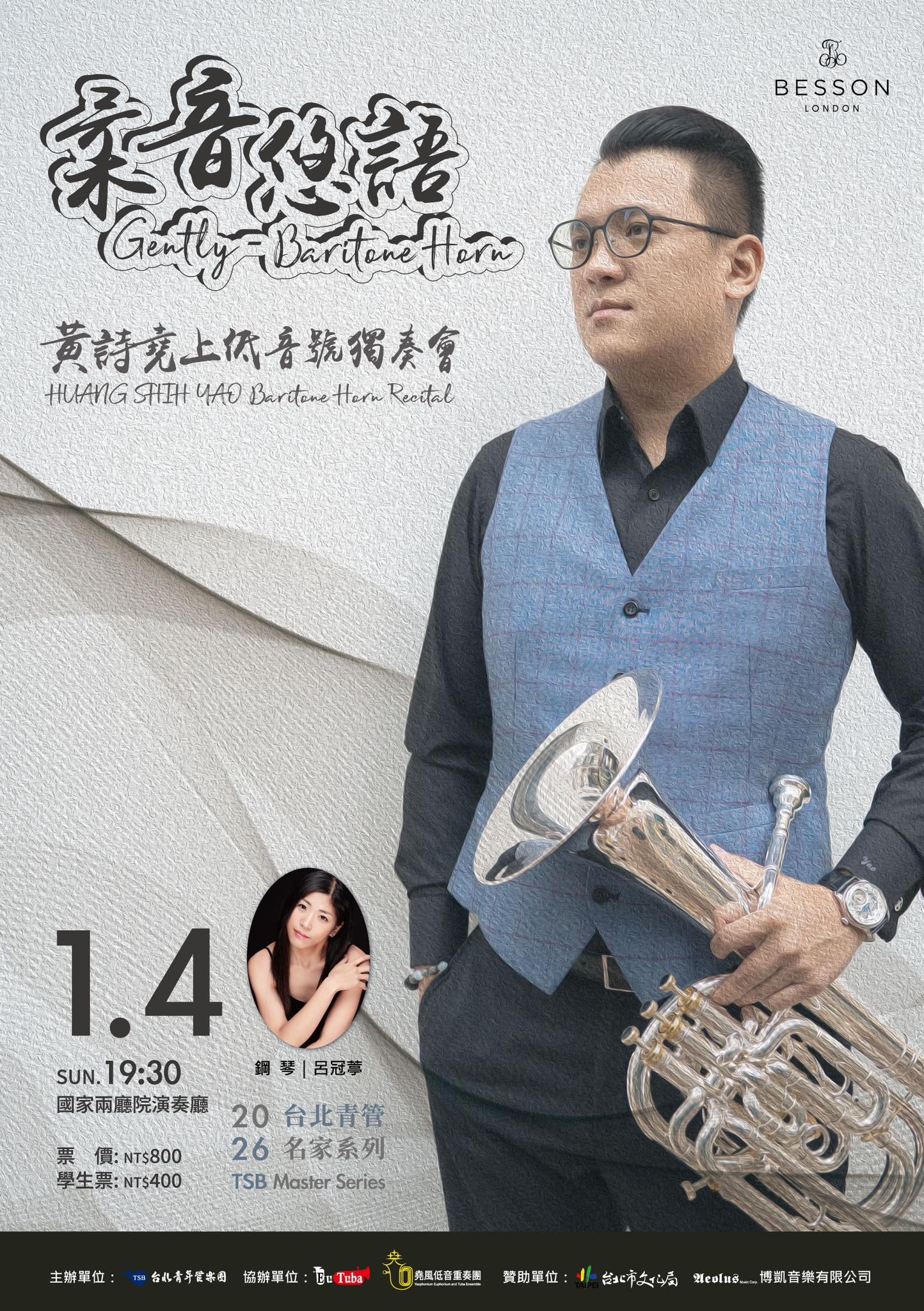 台中場 ➤演出日期:2025年11月15日(星期六)下午14:30 ➤演出地點:台中中興大學惠蓀堂 ➤票價:NT 4500/4200/3600/3000/2400/1800/1200
